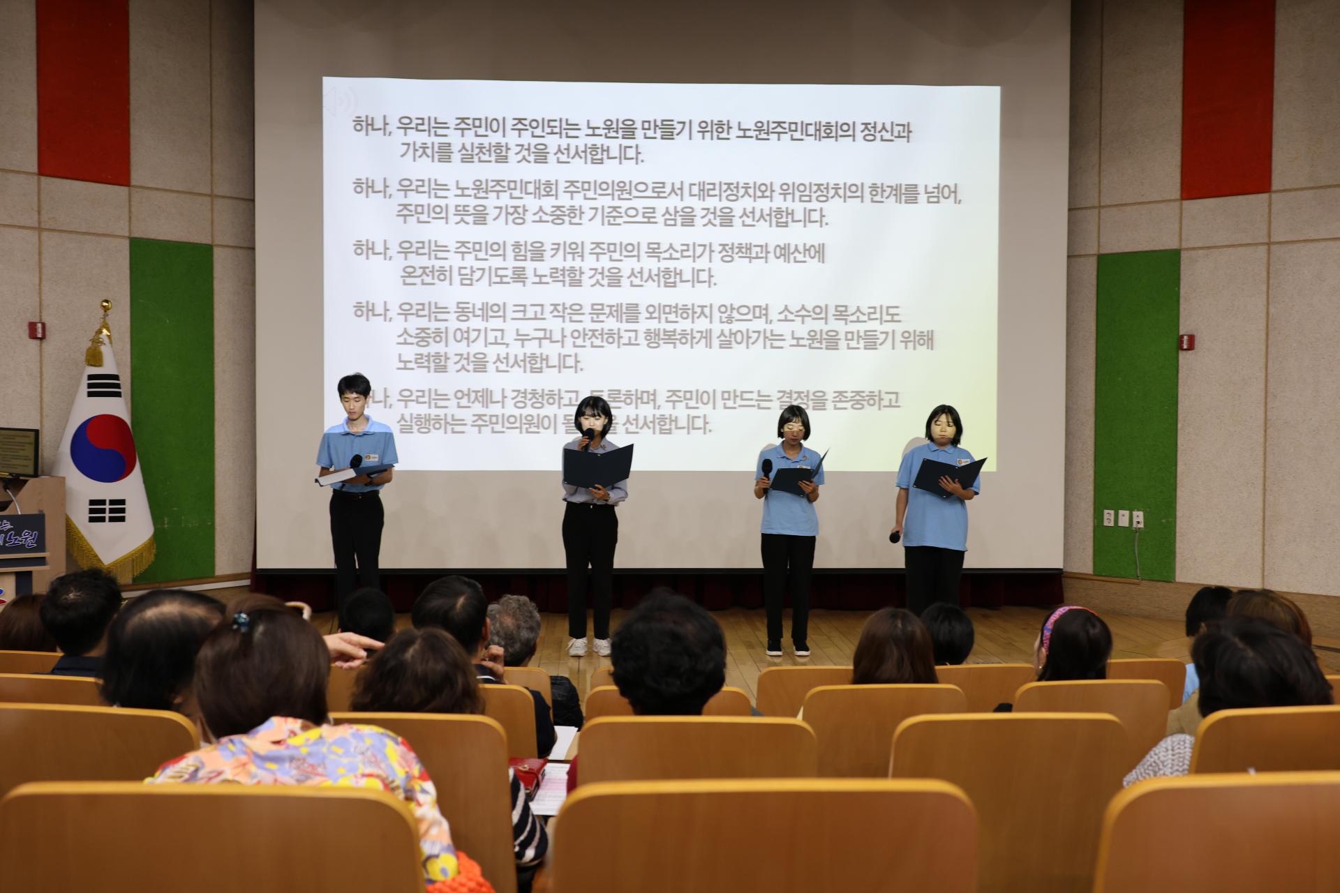 하나, 우리는 주민이 주인되는 노원을 만들기 위한 노원주민대회의 정신과 가치를 실천할 것을 선서합니다.