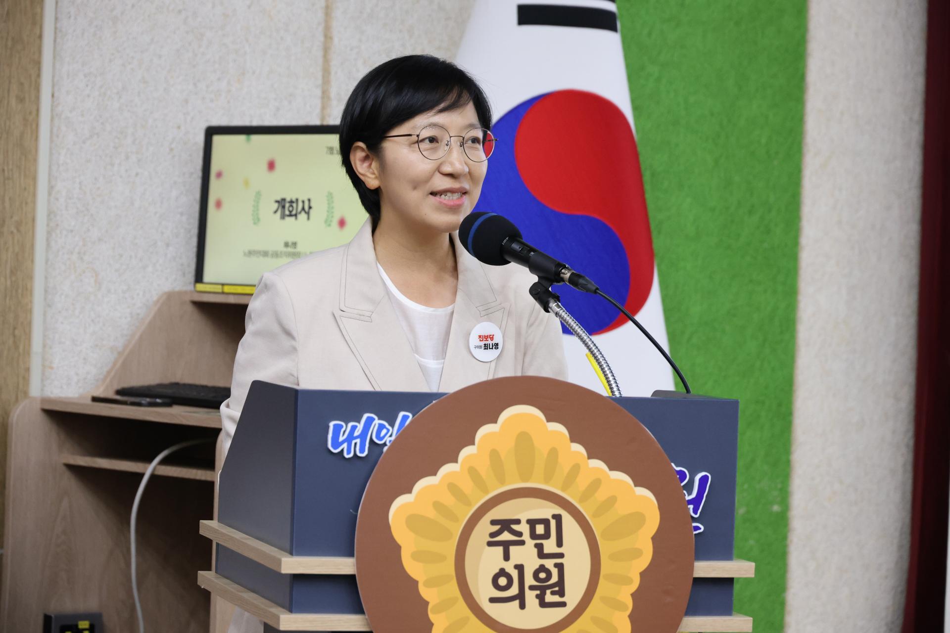 행사는 유룻 노원주민대회 청년봉사단 2기 단장의 사회로 진행되었고, 최나영 공동조직위원장이자 노원구의회 의원의 개회사를 맡았습니다.